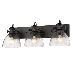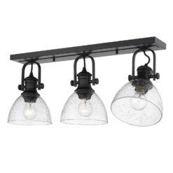 Golden Lighting Hines 7 in. Black with Seeded Glass 3-Light Semi-Flush Mount