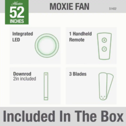 As a part of the SIMPLEconnect Wi-Fi Collection, the Moxie smart home ceiling fan integrates with home automation devices including Amazon Alexa, Apple HomeKit, and the Google Assistant so you can control your ceiling fan and light with voice commands or the tap of a button. The included handheld remote is pre-paired with the pre-installed remote receiver, making installation easier. Featuring our exclusive SureSpeed Guarantee, this high-velocity fan delivers airflow optimized for ultimate high-speed cooling.