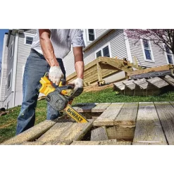 Add versatility to your 20-volt max cordless system with the dccs620p1 brushless compact cordless chainsaw. This cordless chainsaw is built to handle tough construction and outdoor jobs and its lightweight design maximizes user control. Use the chainsaw to cut beams, rough-out openings, do demolition work and more.