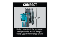 Battery side-loads providing a more compact design at only 10-1/2 in. L for easier use in constrained spaces - Built-in LED light with an independent on/off illuminates the cutting line at the front of the saw