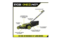 The 16 in. RYOBI 18V ONE+ HP Brushless Mower easily starts with the push of a button and mows up to 40-minutes or a ¼ acre or less with both included batteries. The premium HP brushless motor provides more power, longer runtime, and a longer motor life. Simply insert the included battery and you’re ready to mow in-seconds without the hassle of gas or oil.