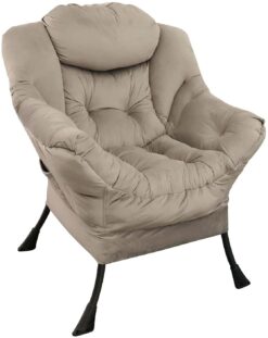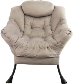 GOLDSUN Accent Chair Lazy Reclining Armchair with Removable Metal Legs and High-Density Foam, Comfy Upholstered Single Sofa Chair for Living Room, Bedroom, Office (Grey)