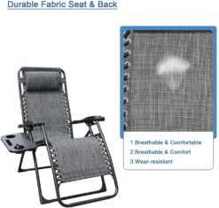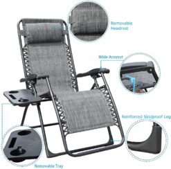 GOLDSUN Zero Gravity Chair Patio Folding Lawn Lounge Chairs Outdoor Foldable Camp Reclining Lounge Chair with Cup Tray for Backyard Porch Swing Pool and Beach Set of 2 (Grey)