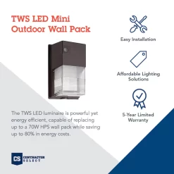 The popular TWS luminaire is now available with long-lasting, energy-efficient LED technology. Featuring a classic dayform, the TWS LED offers a traditional appearance and is powered by advanced LEDs. The TWS LED luminaire is powerful yet energy efficient, capable of replacing up to a 70W HPS or 100W MH wall pack while saving up to 80% in energy costs. With long-life LEDs, the TWS LED eliminates frequent lamp and ballast replacements associated with traditional technologies.
