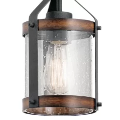 Kichler  Barrington Distressed Black and Wood Tone Rustic Seeded Glass Cylinder Mini Pendant Light