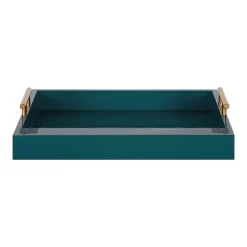- GLAM FINISH: Decorative contemporary tray with a beautiful dark teal base and complementing gold metal handles will be an elegant accent in your home
