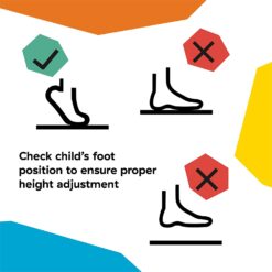 - 3-position height-adjustable seat travels 360° around the table, supporting baby’s first steps
