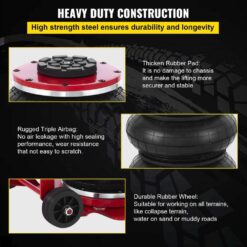 - Heavy-duty construction: our pneumatic jack is a high-strength steel that makes the whole body sturdy and durable highly sealed airbags will not leak or be scratched. in addition, our wheels are better suitable for all-terrain, helping you maintain your car anytime, anywhere