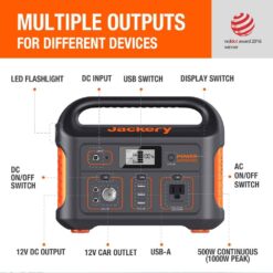 Jackery HTE042-550 500-Watt Continuous/1000-Watt Peak Output Power Station Explorer 550 Push Button Start Battery Generator for Outdoors