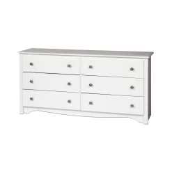 Prepac Monterey 6 Drawer Wooden Double Dresser, 16″ x 59″ x 29″, White