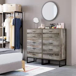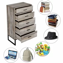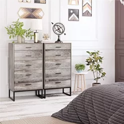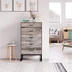 - 【5 Drawers with Handles】The dresser has 5 drawers with large capacity and sturdy slides on the drawers that slide in and out very smoothly and noiselessly for sorting everyday items such as clothes, socks, scarves, cosmetics, documents and other items.