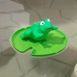 - In the box: Water pond with channels and tray, water pump, funnels, water-activated spinner, 10-piece accessory set including a bucket, lily pad with squishy frog and fish squirt toys, and more.