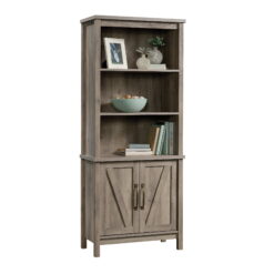 Better Homes & Gardens Modern Farmhouse Library Bookcase with Doors, Rustic Gray Finish