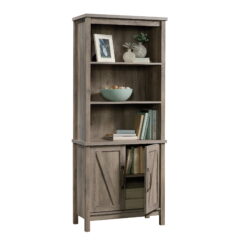 Style and storage all in one. Update the look of your home when you add the rustic-inspired style and functional design of this library bookcase with doors from the Better Homes and Gardens modern farmhouse collection. This library bookcase features three spacious shelves that are perfect for storing and displaying a variety of different items like your collection of novels, decorative plants, work binders, and framed photos of your family. These three shelves have the ability to adjust to different heights to create flexible storage for items of all shapes and sizes. Behind the two framed doors is a hidden storage area that is ideal for stowing away items like organizing bins, magazines, and anything else that you prefer not to be seen. Its charming good looks and versatility make this library a great fit for any room in your home the living room, your office, or the dining room. Finished in rustic gray and detailed with attractive hardware, this stunning library bookcase is just what your home needs.