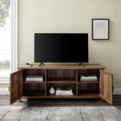 Woven Paths Franklin Grooved 2-Door TV Stand for TVs up to 65″, Reclaimed Barnwood