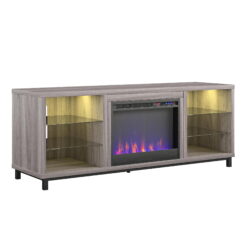 - Ameriwood Home Lumina Deluxe Fireplace TV Stand includes a 23” wide fireplace insert and can hold flat paneled TVs up to 70” wide with a maximum weight of 120 lbs.