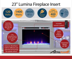- The fireplace insert features adjustable flame brightness, flames with or without heat, and much more to make your living room or family room the place to be