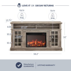 Curating a warm room ambiance just got easier. This TV unit with an embedded electric fireplace heater allows you to generate gentle warmth to keep the space cozy and snug. Realistic flames from a glowing log and ember bed enhance your decor and blend well with the rustic theme of this accessory. It can also be used without heat to enjoy the flame effect even in the warm summer months. Plus, infrared heating won’t dry out the indoor air, preventing sinus issues and dry skin woes.