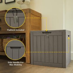 - 𝗣𝗢𝗥𝗧𝗔𝗕𝗟𝗘 𝗔𝗡𝗗 𝗦𝗘𝗖𝗨𝗥𝗘 – The patio storage box comes with two handles on each side, so it’s easy to move around alone or with a friend. If you’re on the go, you can even lock the box for guaranteed security.