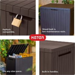 From the balcony to the poolside, the Keter City Box provides small space storage for any space. It’s attractive, weatherproof and resists everything from rot to rust.