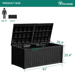 - IMMENSE STORAGE CAPACITY- This XL-sized outdoor storage box features a generous 150 gallon capacity; With dimensions of 61″L x 28.4″W x 25.4″H, the deck box offers ample space to accommodate both indoor and outdoor storage, ideal for outdoor cushions, sports equipment, toys, tools, etc.