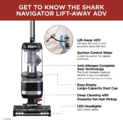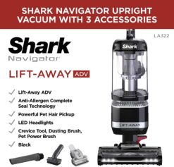 Shark LA322 Navigator ADV Corded Vacuum with Pet Power Brush Crevice and Upholstery Tool, Lift-Away Upright, Black