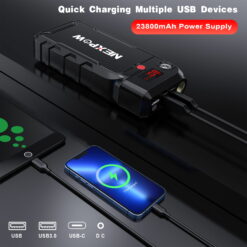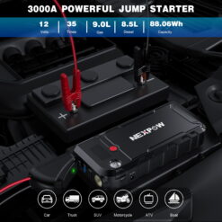 - COMPACT AND POWERFUL JUMP STARTER – The NEXPOW G18A 3000A peak current ultra-safe jump starter box stands out for its compact but powerful build. This jump starter delivers 3000 amps that can start the 12-Volt vehicles up to 9.0L Gas/8.5L Diesel engines, it can provide a jump up to 35 times before needing a recharge. The battery booster could start pickups, trucks, SUVs, RVs, motorcycles, boats, tractors, etc.