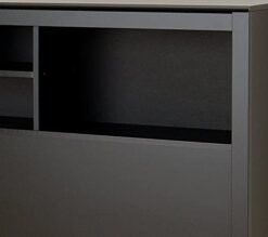 Complete your dream reading nook with the Prepac Bookcase Headboard. This freestanding headboard is the must-have room essential for any reading fanatic, and acts as the perfect finishing touch for a bedframe with a clean black laminate finish. Reduce clutter and hassle with this versatile bed headboard, featuring three sizeable open shelf compartments to provide ample room for your favorite books, trinkets, alarm clocks, picture frames, or other personal belongings that you want to keep close to you while you sleep. Adjust the shelf in the middle storage compartment for a customizable bookcase layout. This high-quality bed headboard ships flat packed and ready to be assembled with drilling and mounting hardware, not included. This modern bedframe attachment is made with non-toxic, CARB-2 compliant laminated composite woods, ensuring maximum durability. Measuring at 65.75″W x 43″H x 11″ D with compartments measuring 9.25″ Dx 21.5″ W x 11.25″ H, this headboard with shelves is the ideal match for the Prepac Full or Queen-size Mate’s Platform beds, to further maximize your bed frame storage and provide the perfect foundation for restful nights.
