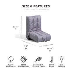 The Big Joe Grab & go is your perfect bean bag chair to bring on your next adventure. These 2 packs include two gray chairs. Compact and foldable, it is easy to have these handy for wherever your day takes you! When you find the perfect spot, unsnap it, secure the fasteners on the bottom of the chair and take a seat. When it’s time to go, disconnect the fasteners, snap it back together, and you will be on your way. Store a few in your trunk, closets, and anywhere else you want to keep fun and functional seating handy. Fun size for teens and adults. Stay comfy wherever you may go parks, concerts, games, on your deck, and even in your living room or den. This Big Joe is not weatherproof and should be stored in a dry location out of the sun. Bean refill bags are sold separately so you can give your grab & go chairs a pick-me-up whenever needed since all well-loved bean bags compress over time. Dimensions are 18.5″ L x 23″ W x 14″ H. The cover is not removable but may be spot cleaned as needed.