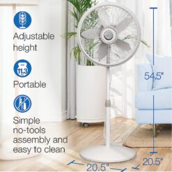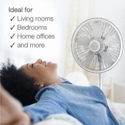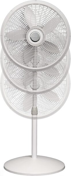 Lasko Oscillating Pedestal Fan, Adjustable Height, 3 Speeds, for Bedroom, Living Room, Home Office and College Dorm Room, 18″, White, 1820