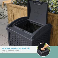 - OUTDOOR PATIO TRASH CAN: Features a decorative wicker-style design for a stylish addition to your outdoor space