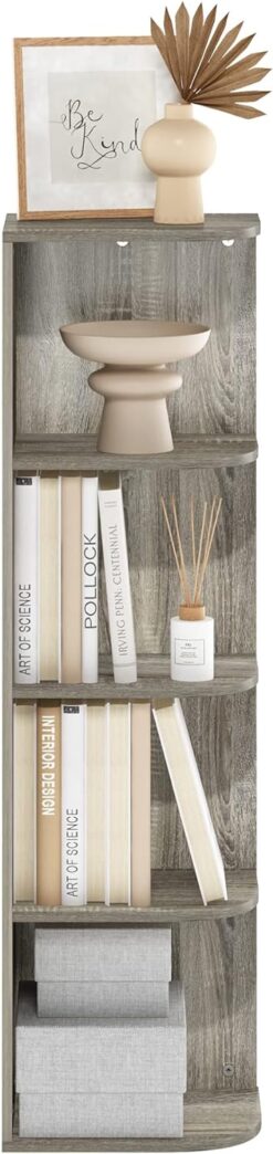 Furinno Pasir 4-Tier Corner Open Shelf Bookcase, French Oak