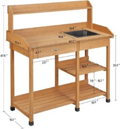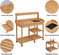 Topeakmart 45.2×17.7×47.6” (LxWxH) Potting Benches Outdoor Garden Potting Table Work Bench with Removable Sink Drawer Rack Shelves Work Station, Wood