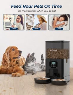 - The Optimal Choice: If your cat has learned the place where you keep the kibbles and treats, with the Voluas dry food dispenser, your little thief will never indulge as it pleases in the cat food! This double cat feeder is completely automatic and dispenses food at scheduled times, supporting a balanced and healthy diet for your cats.