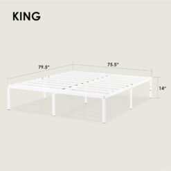 Best Price Mattress 14 Inch Metal Platform Bed Frame, Heavy Duty Steel Slats, White, King (SPSC-14WH-K)