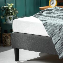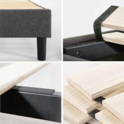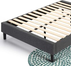 - LESS IS MORE – Replace your basic metal frame and box spring with this sleek, simple and stylish platform bed frame, crafted with fabric upholstery and wooden slats for reliable and understated support all in one foundation