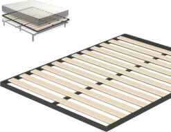 - Foam padded tape is added to the steel frame for noise-free use and non-slip tape on the wooden slats prevents your mattress from moving