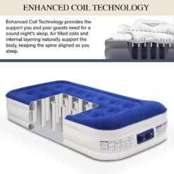 King Koil Luxury Twin Air Mattress with Built-in High Speed Pump for Camping, Home & Guests – Twin Size Double High Airbed Luxury Inflatable Blow Up Mattress Waterproof, Blue