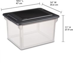 It’s hard to be productive while surrounded by clutter. Keep your office and workspace neat and organized with the 12-pack Sterilite Convenient Versatile Clear Organizing Storage File Box with Lid. This bundle comes with 12 packs of storage file boxes for all your needs. The overall dimensions of this item are 18.5-inches long, 14-inches wide, and 11-inches tall, making it an ideal solution for keeping receipts, bills, taxes, and paperwork sorted and contained. Customize letter or legal-sized hanging folders and file away neatly organized, while reducing clutter around the home or office. The tight-fit snap black lid keeps files dust-free and protected, while the indexed top allows for multiple storage containers to be stacked, maximizing vertical storage space. The organizer’s contoured design provides a comfortable grip surface for easy transporting when files need to be taken on the go or relocated. Create a productive environment with the help of a 12-pack Sterilite Convenient Versatile Clear Organizing Storage File Box with Lid.
