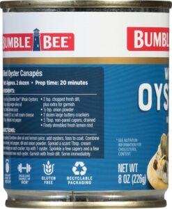 - BUMBLE BEE OYTSERS: Bumble Bee Premium Select Whole Oysters are perfect for hors d’oeuvres, snacks or party food