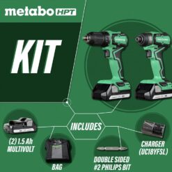 Metabo HPT Cordless 18V Drill and Impact Driver Combo Kit | Sub-Compact | Brushless Motor | Lithium-Ion Batteries | Lifetime Tool Warranty | KC18DDX
