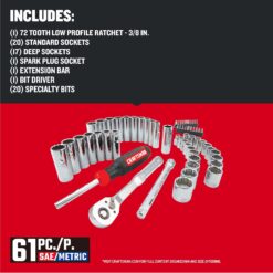 CRAFTSMAN Mechanics Tool Set, 3/8 Inch Drive, 61 Piece (CMMT45161)