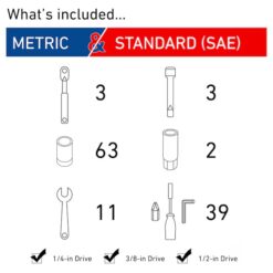 | 3/8-in Drive Ratchet Included | Yes | Number of Sockets | 63 |
