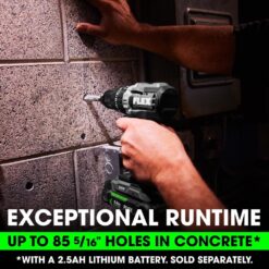 - EXCEPTIONAL RUNTIME – Drill up to 85 5/16″ holes in concrete with 2.5Ah battery