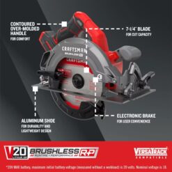 - Brushless motor: Up to 75% more power compared to CRAFTSMAN brushed circular saw CMCS500 by measuring the unit output measured in unit watts out (UWO) with 4.0 Ah battery (sold separately)