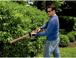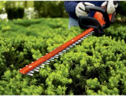 - 24 inch dual-action blades of the battery powered hedge trimmer cut branches fast with less vibration