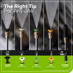 - Includes: Premium foam cannon, rugged metal gun and 25-ft kink-resistant hose; (5) Spray nozzles- Turbo, Soap, 15°, 25° and 40°