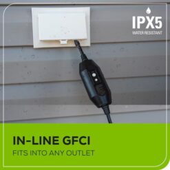 - Safety Features: In-line GFCI (Ground Fault Circuit Interrupter) and waterproof power plug works with any standard electrical outlet; IPX5 water resistance level
