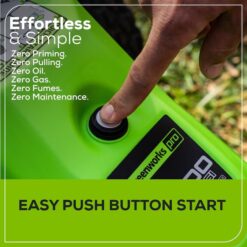 The Greenworks Pro 2300 PSI pressure washer with Premium foam cannon kit is powerful and reliable, delivering 2.3 GPM Max of water flow. With a hassle-free push-button start, it powers up easily every time and gets to work fast. This unit features a Total Stop System. (TSS) senses water flow in the pump. When the trigger is released, water stops flowing through the pump. The TSS then automatically turns the motor off to protect the pump from overheating. Innovative Greenworks TruBrushless™ motor technology automatically adapts motor power for maximum cleaning power with any nozzle. It’s equipped with extra-long 35-ft power cord with in-line GFCI and waterproof power plug, 25-ft kink-resistant hose that eliminates frustrating hose tangles, 10-in never-flat wheels for easy transportation, on-board soap tank, premium foam cannon and on-board accessory storage for the (5) spray nozzles – Turbo, Soap, 15°, 25° and 40°. Backed by an industry-best 10-year motor warranty and 3-year tool warranty, it’s built to stand up to most stubborn dirt and grime for years to come.