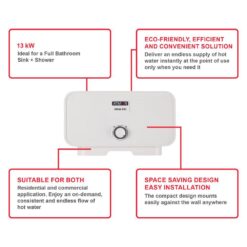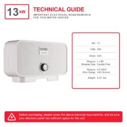 ATMOR AT-13WH-HD 13,000 Watt/240V 2.25 GPM Electric Tankless Water Heater Includes Pressure Relief Device, Ideal for a Full Bathroom